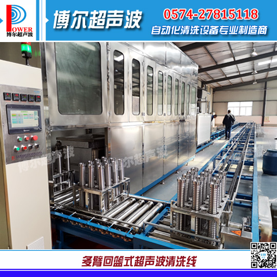 五金零件全自動超聲波清洗機(jī) > 多臂式回籃清洗線